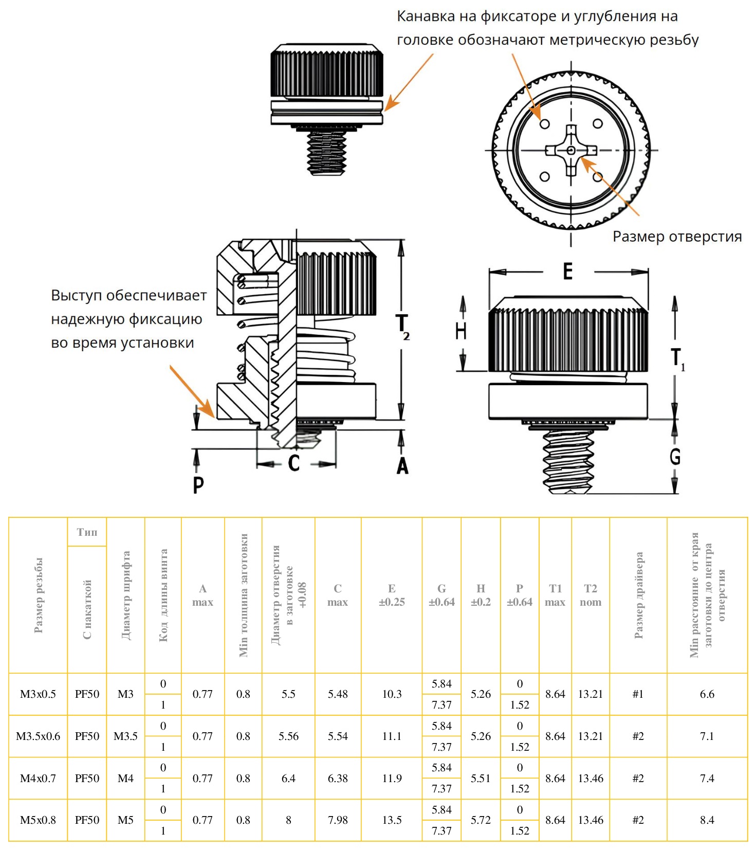 PF61-M4-1CN Винт невыпадающий М4 гладкий колпачок, мин. толщина листа 1мм, A=0.97мм