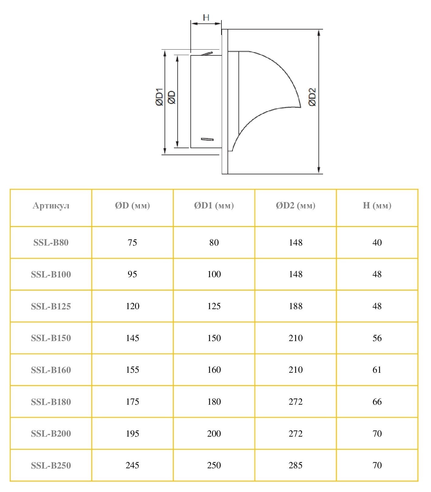 Наружная вентиляционная приточно-вытяжная круглая решетка (диффузор) из шлифованной нержавеющей стали с защитой от атмосферных осадков и сеткой от птиц.