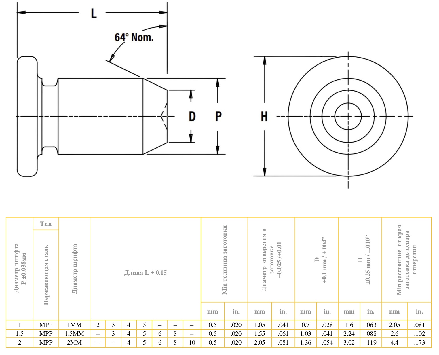 MPP-2mm-4* Микроштифт запрессовочный для установки в лист толщиной менее 0,5 мм