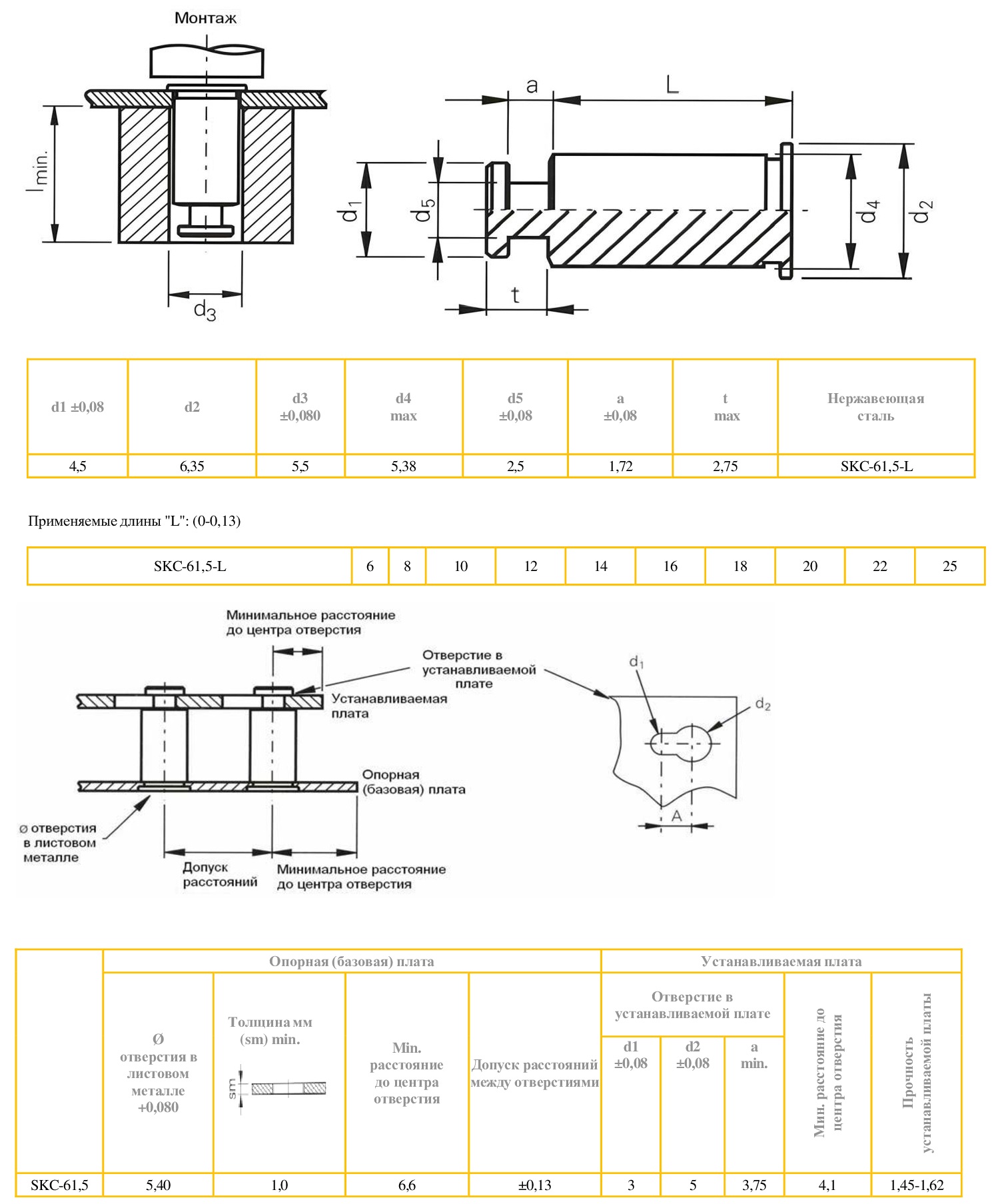 Втулки запрессовочные предназначены для быстрого монтажа печатных плит или панелей на расстоянии друг от друга, можно использовать для размещения или подвешивания сменных компонентов. Как правило, несколько стоек SKC используются с одной стандартной стойкой с резьбой PEM, к которой можно привинтить винт для защиты платы или компонента от любого нежелательного смещения.